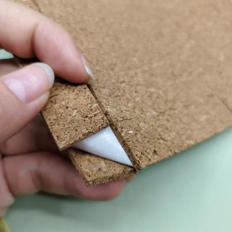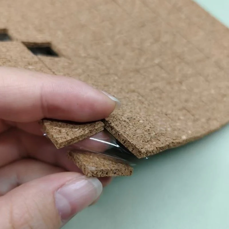 1/8" x 3/4" x 3/4" korkforsendelsesputer med klebende bakside, hovedsakelig sammensatt av kork og avtagbart lim, og papir eller gjennomsiktig PET som foring på baksiden, pakket i boks i form av ark eller ruller, som vist nedenfor: